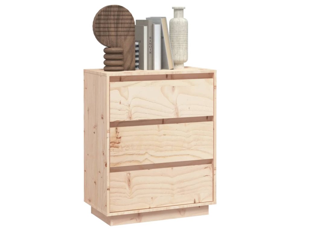 Odkládací skříňka je vyrobená z masivního borového dřeva, které zajišťuje její odolnost a stabilitu. Ve skříňce se zásuvkami najdete spoustu úložného prostoru, kam si můžete uložit knihy, multimediální zařízení a další věci. Robustní horní deska se navíc skvěle hodí k vystavení dekorativních předmětů, fotorámečků nebo pokojových rostlin.