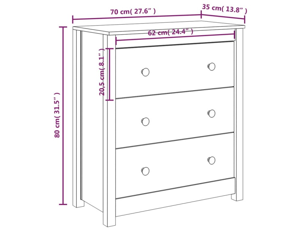 Příborník 70 x 35 x 80 cm masivní borové dřevo