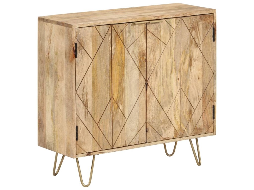 Příborník je vyrobený z masivního mangovníkového dřeva a je vysoce stabilní a odolný. Pevná horní deska je ideální k vystavení dekorativních předmětů, jako jsou vázy či květináče. Skříňka vám poskytne spoustu úložného prostoru pro přehledné uspořádání nejrůznějších věcí. Dekorativní motivy dodávají příborníku rustikální kouzlo. Sestavení produktu je snadné.