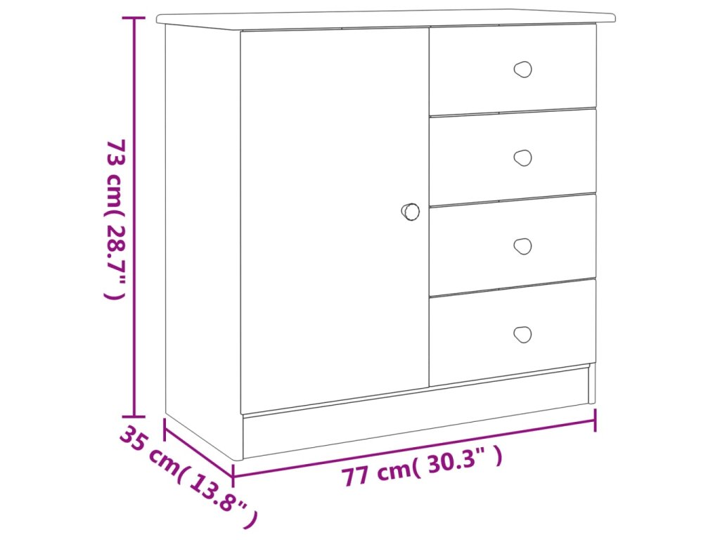 Příborník ALTA bílý 77 x 35 x 73 cm masivní borové dřevo