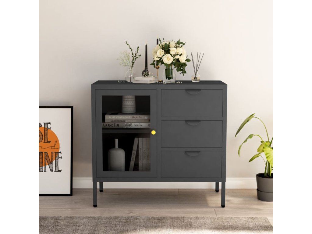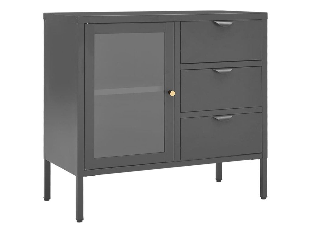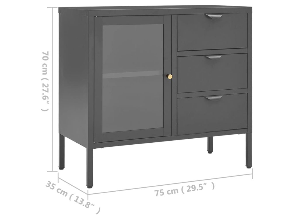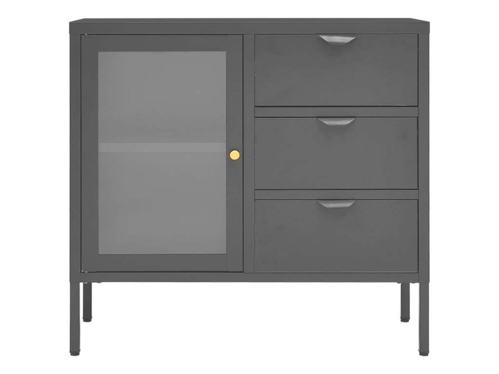 Příborník antracitový 75 x 35 x 70 cm ocel a tvrzené sklo