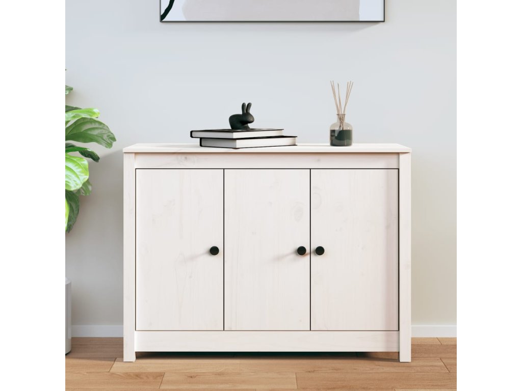 Příborník bílý 100 x 35 x 74 cm masivní borové dřevo