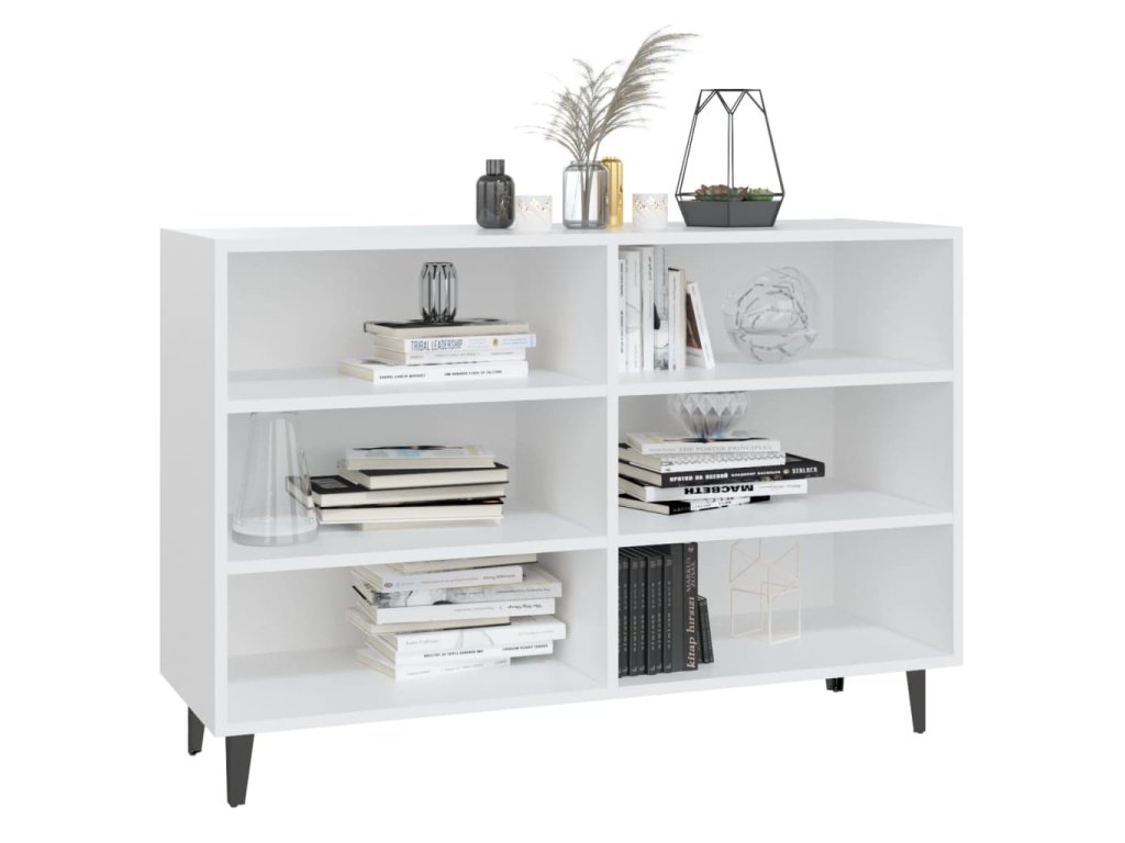 Tato knihovna má kovové nohy a robustní konstrukci, tudíž je mimořádně odolná a pevná. Odkládací skříňka disponuje 6 poličkami, které poskytují dostatek úložného prostoru pro vaše knihy, multimediální zařízení a další předměty. Robustní stolní deska je také ideální pro vystavování dekorativních předmětů, fotorámečků nebo květináčů. Úložnou skříňku navíc snadno očistíte vlhkým hadříkem.
