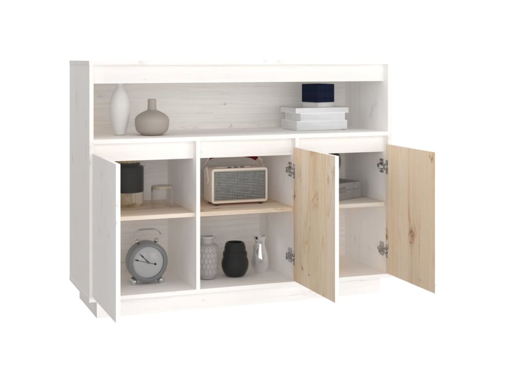 Příborník bílý 104,5 x 34 x 80 cm masivní borové dřevo