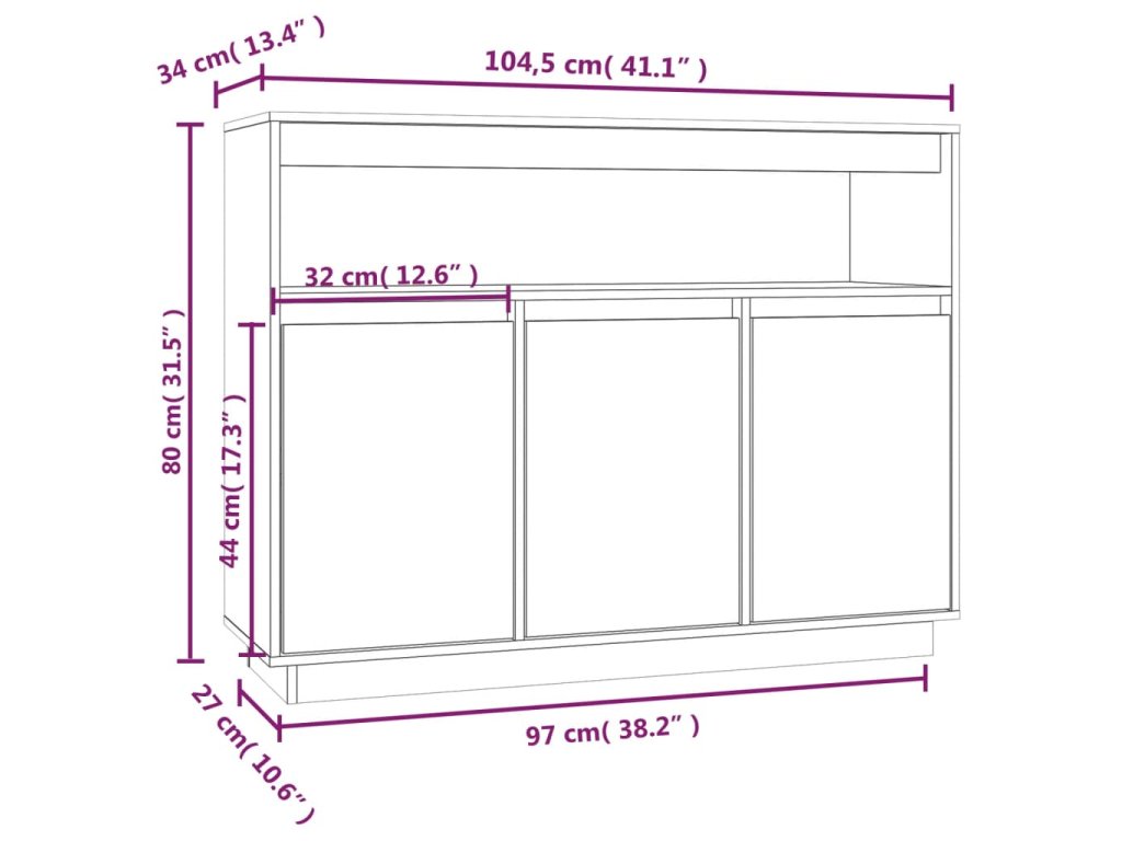 - Rozměry: 104,5 x 34 x 80 cm (Š x H x V)