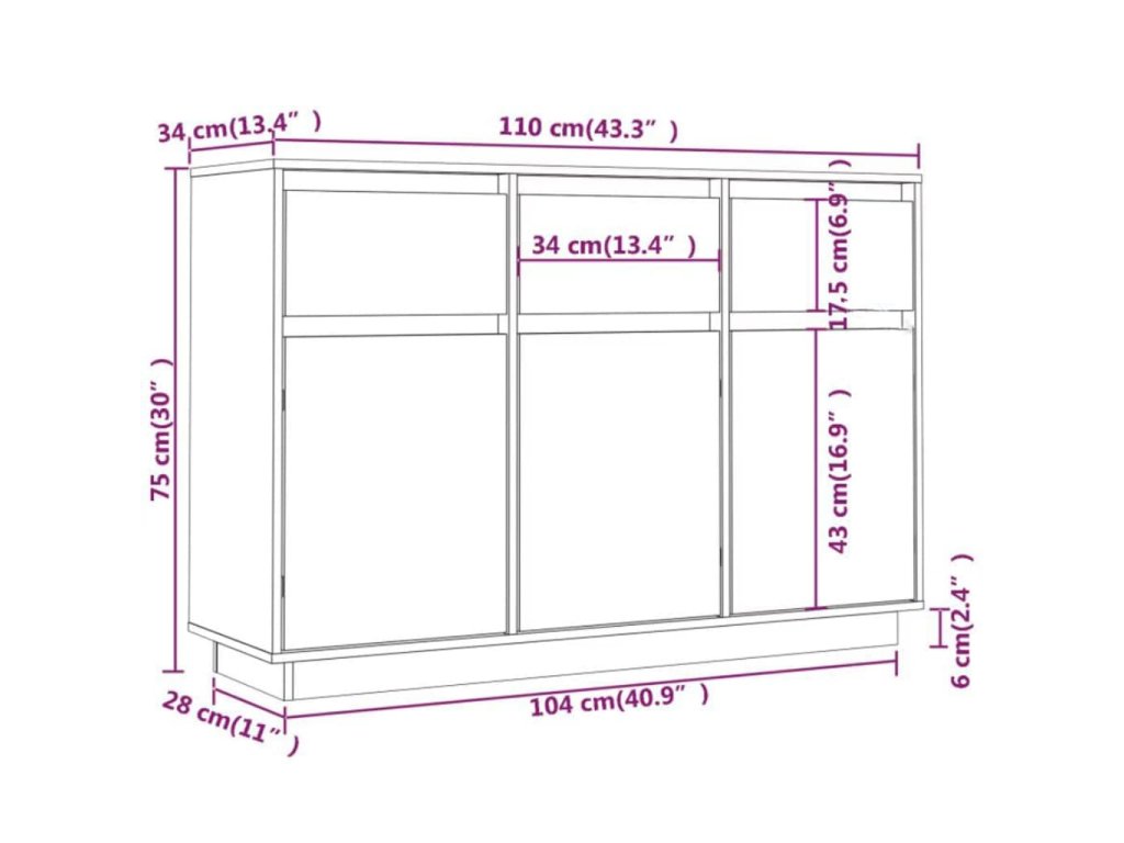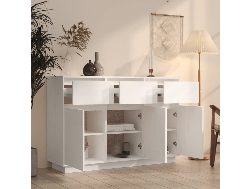 Příborník bílý 110 x 34 x 75 cm masivní borové dřevo