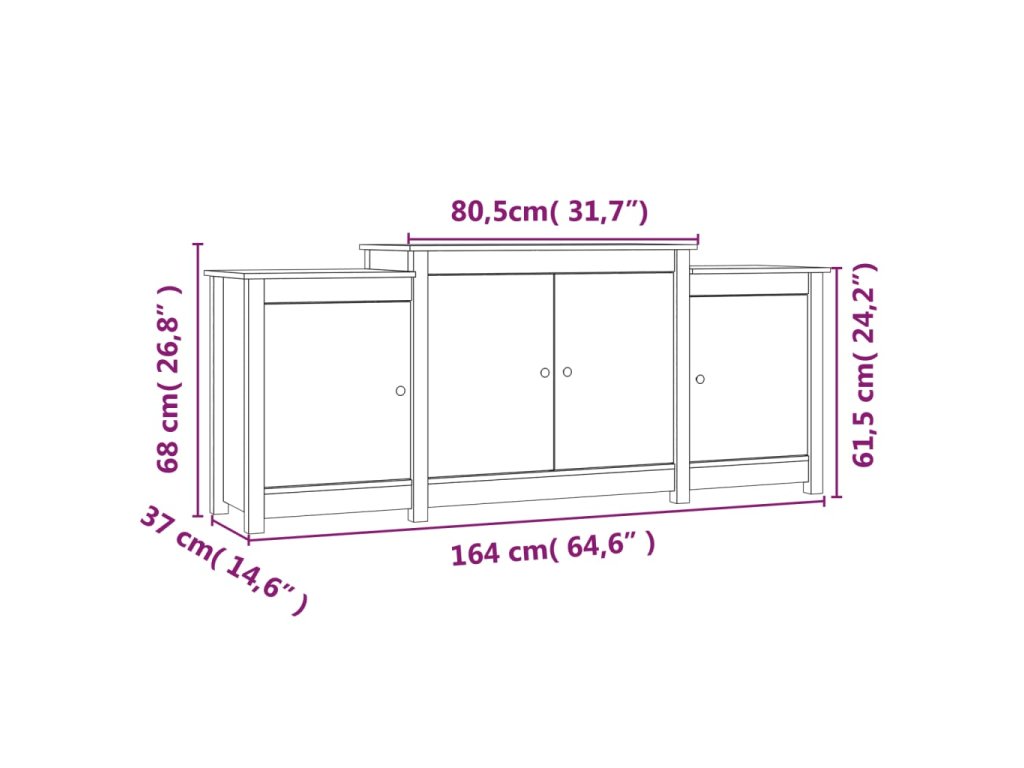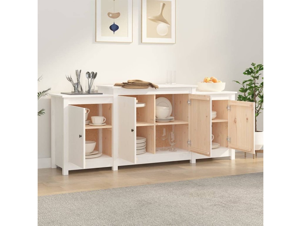 Příborník bílý 164 x 37 x 68 cm masivní borové dřevo