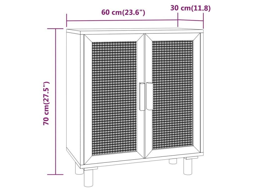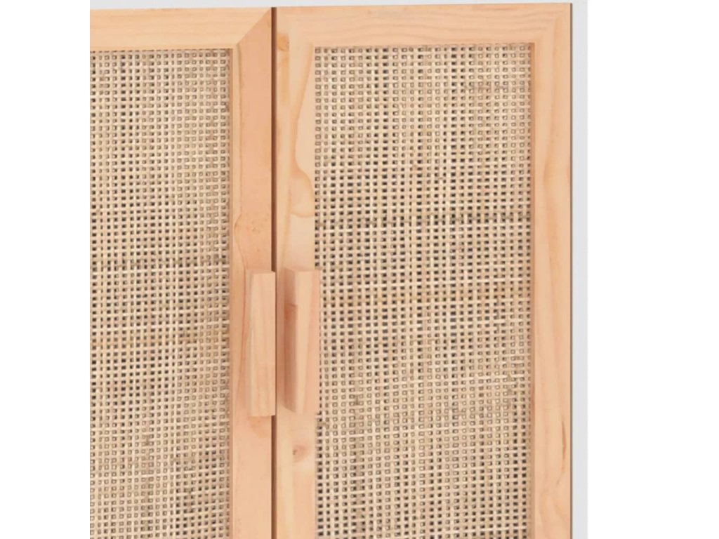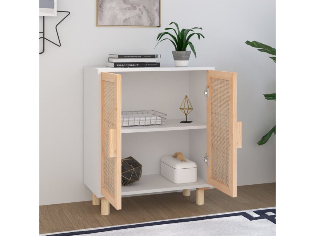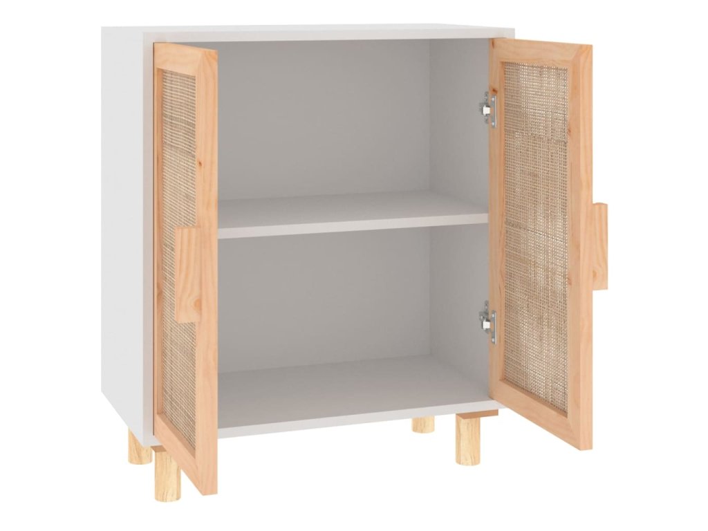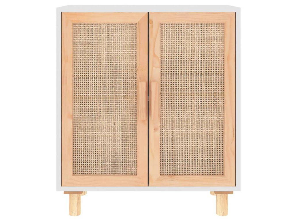Příborník bílý 60x30x70 cm masivní borovice a přírodní ratan