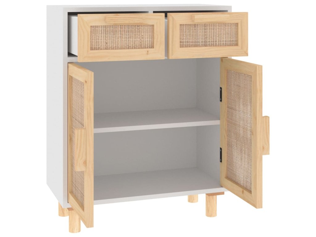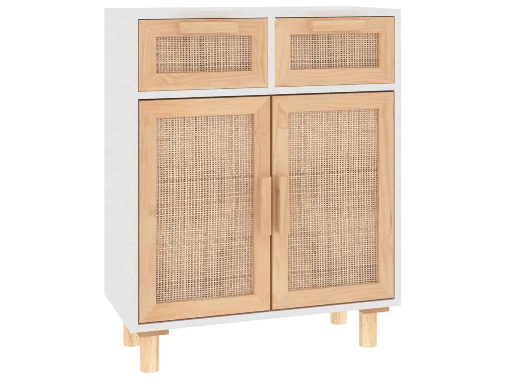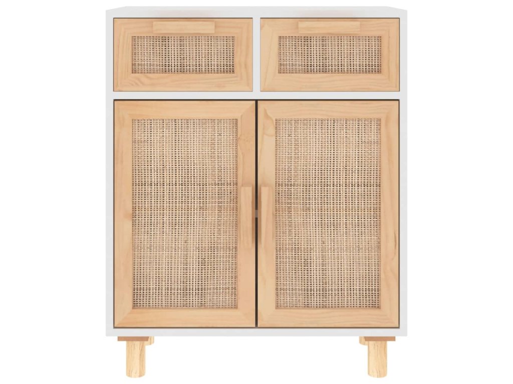 Příborník bílý 60x30x75 cm masivní borovice a přírodní ratan