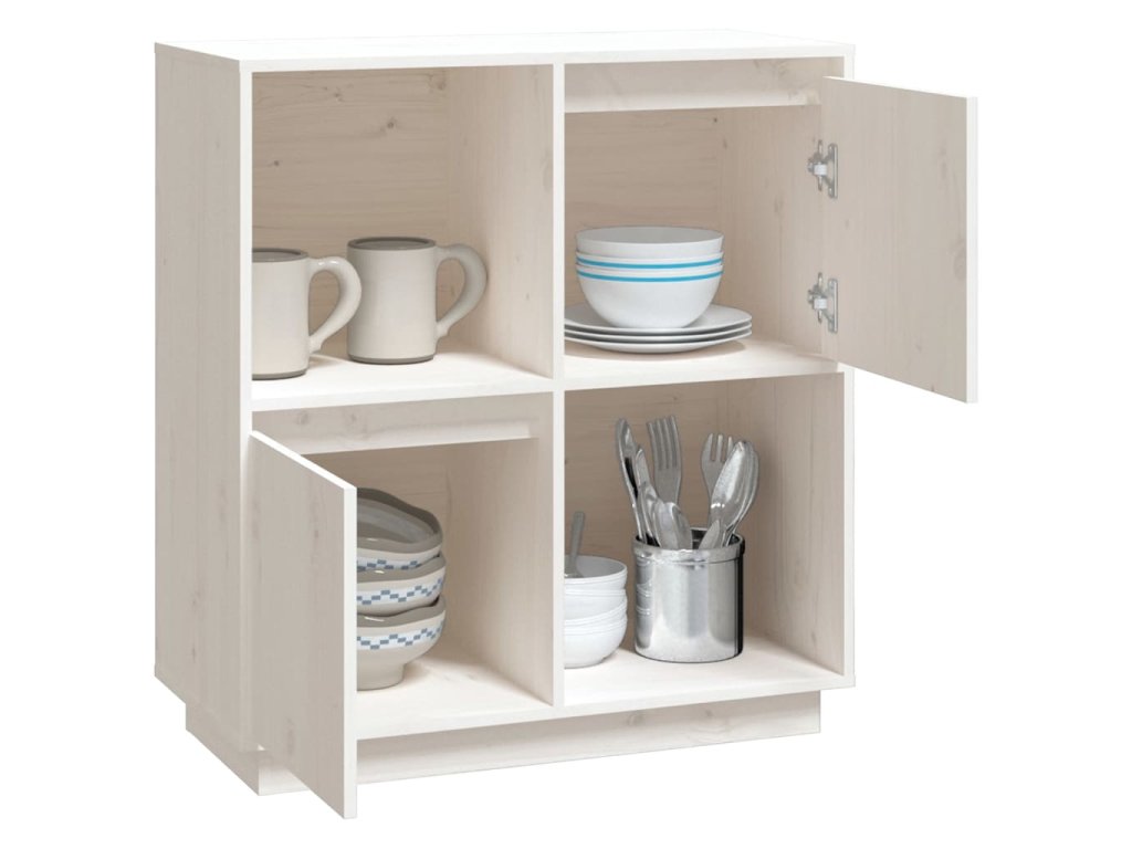 Příborník bílý 74 x 35 x 80 cm masivní borové dřevo