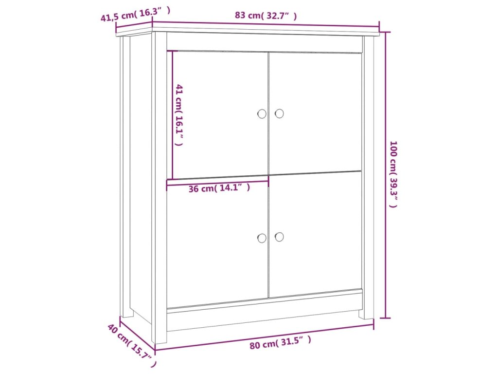Příborník bílý 83 x 41,5 x 100 cm masivní borové dřevo