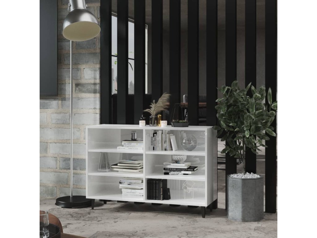 Tato knihovna má kovové nohy a robustní konstrukci, tudíž je mimořádně odolná a pevná. Odkládací skříňka disponuje 6 poličkami, které poskytují dostatek úložného prostoru pro vaše knihy, multimediální zařízení a další předměty. Robustní stolní deska je také ideální pro vystavování dekorativních předmětů, fotorámečků nebo květináčů. Úložnou skříňku navíc snadno očistíte vlhkým hadříkem.