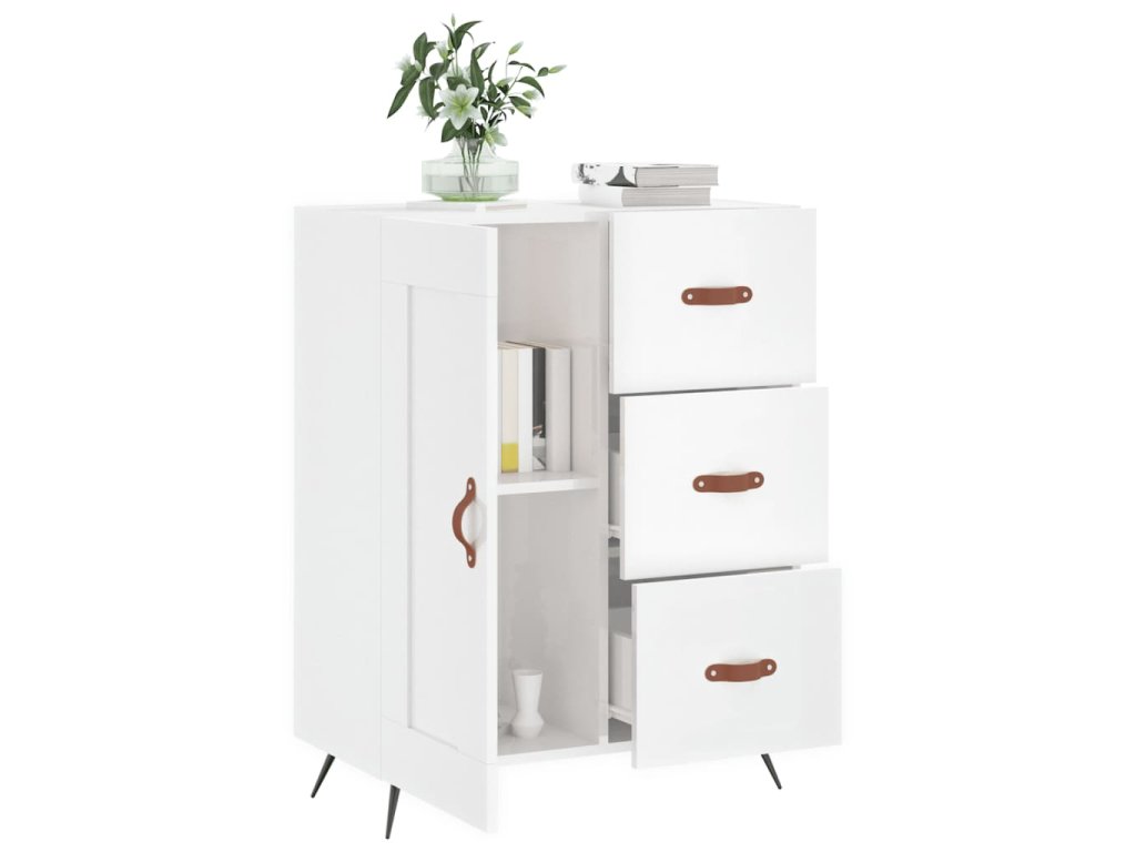 Příborník bílý s vysokým leskem 69,5x34x90 cm kompozitní dřevo