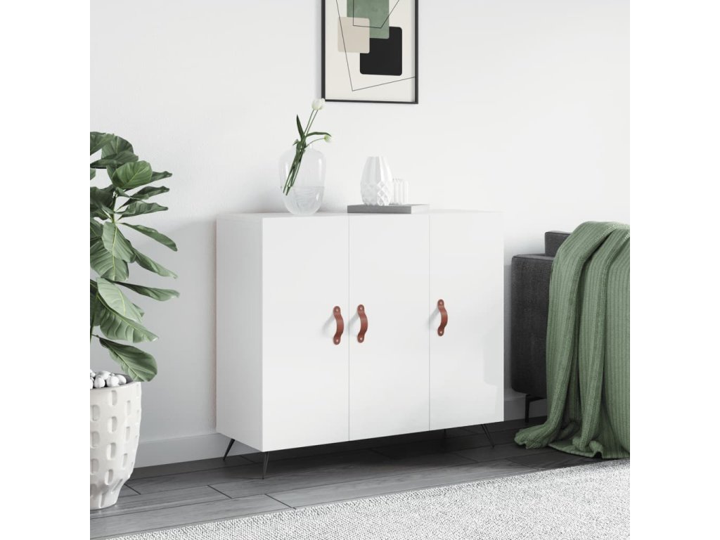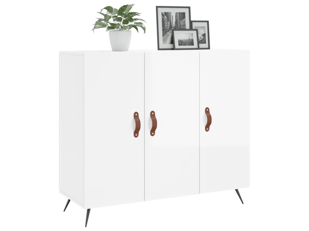 Příborník bílý s vysokým leskem 90x34x80 cm kompozitní dřevo