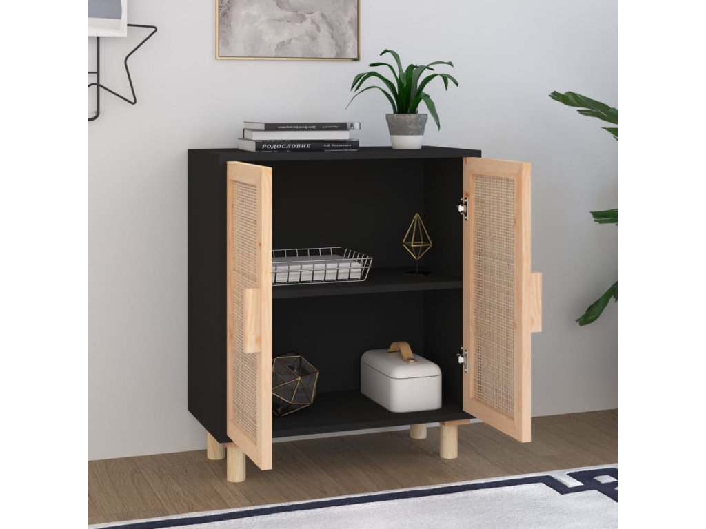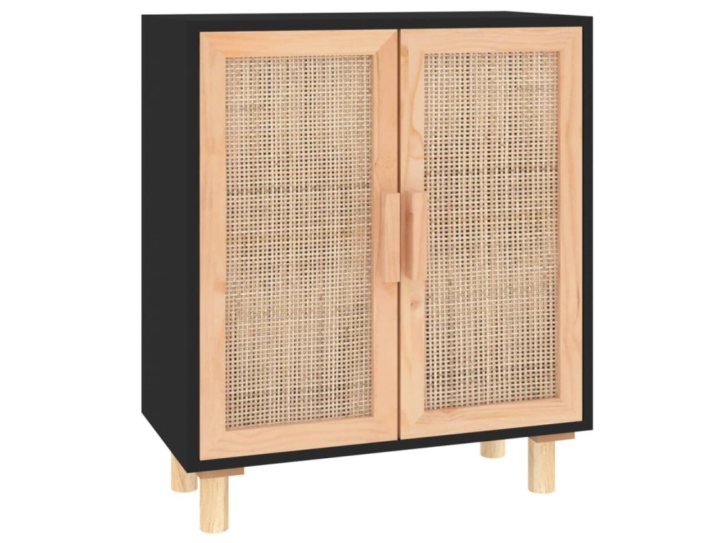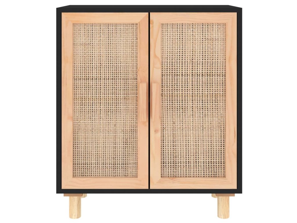 Příborník černý 60x30x70 cm masivní borovice a přírodní ratan