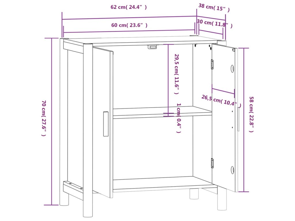 - Rozměry: 62 x 38 x 70 cm (Š x H x V)