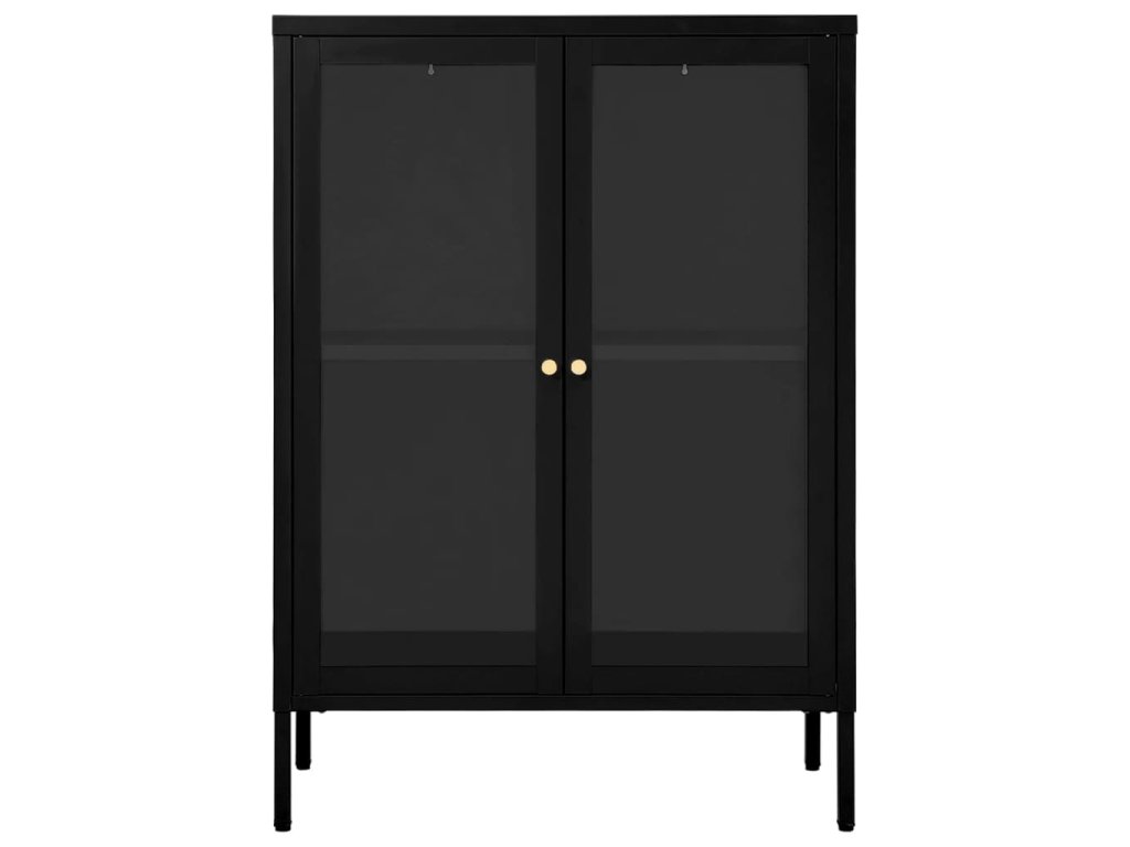 Konstrukce této úložné skříňky je z oceli, takže je pevná a odolná a zajišťuje roky používání. Za skleněnými dvířky najdete přihrádky, které nabízí dostatek úložného prostoru pro přehledné uložení a vystavení vašich knih, časopisů, DVD, váz a dalších dekorativních předmětů na dosah ruky. Police se dá nainstalovat v různých úrovních, máte tak tedy možnost měnit velikost úložného prostoru. Nohy dodávají skříňce mimořádnou stabilitu a lze je snadno nastavit na požadovanou výšku. Příborník se navíc snadno čistí vlhkým hadříkem.