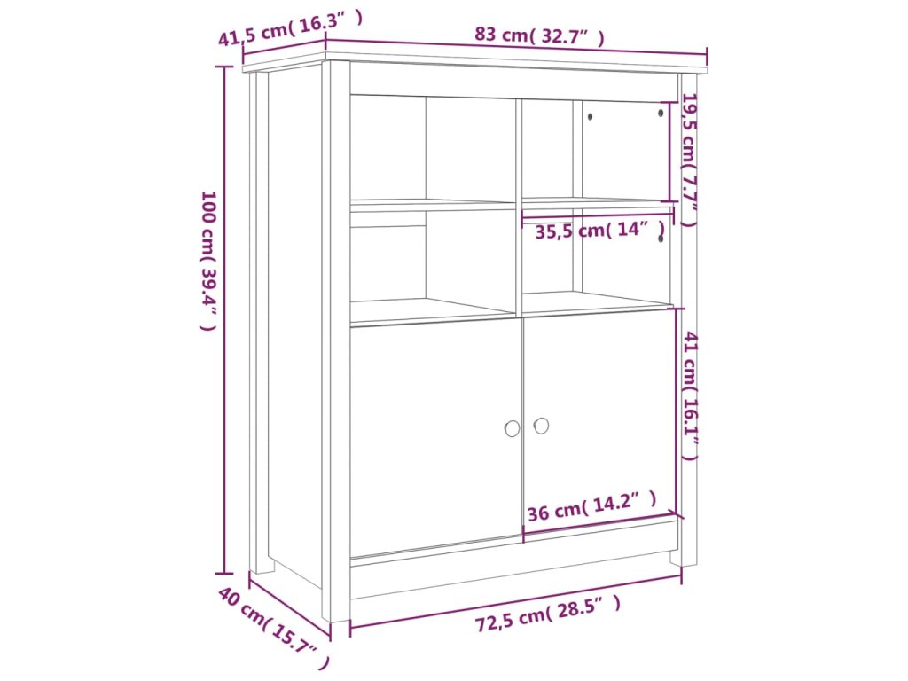 Příborník černý 83 x 41,5 x 100 cm masivní borové dřevo