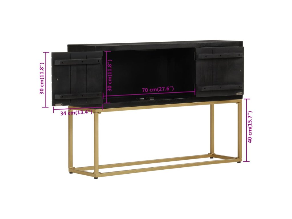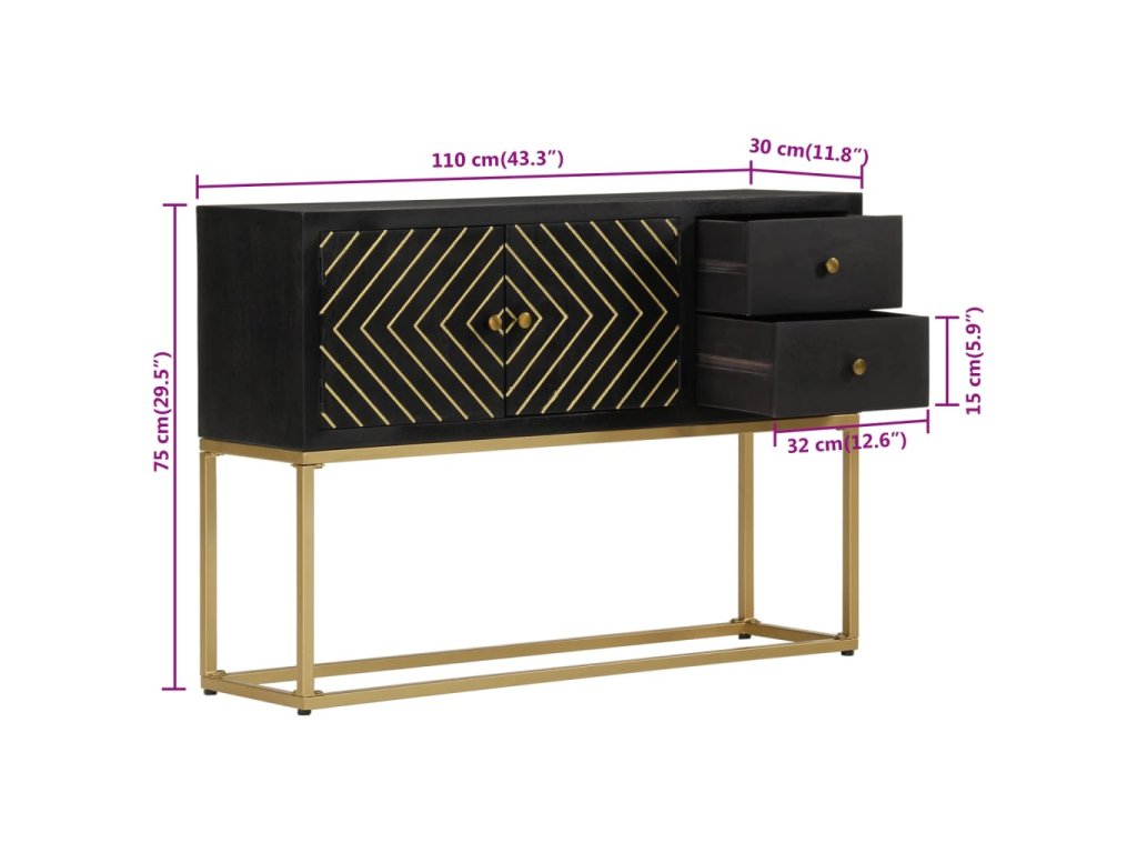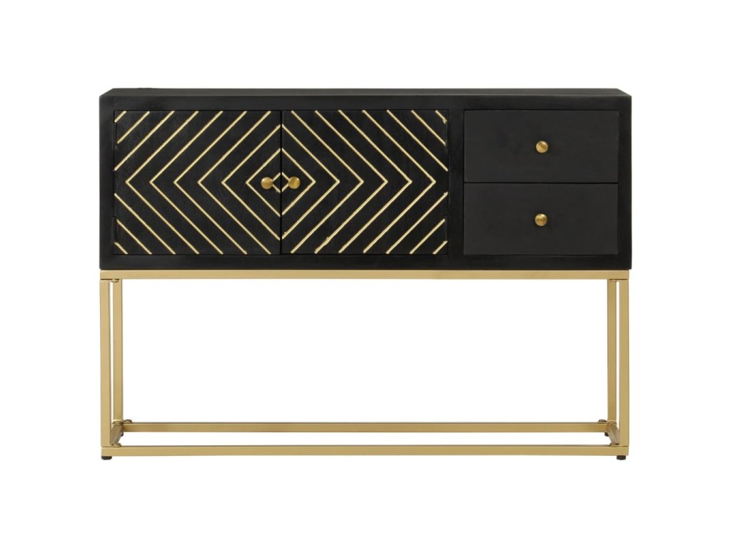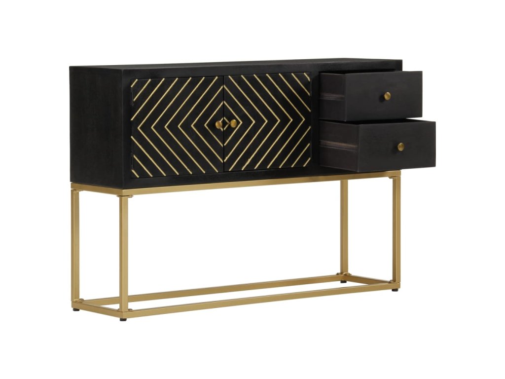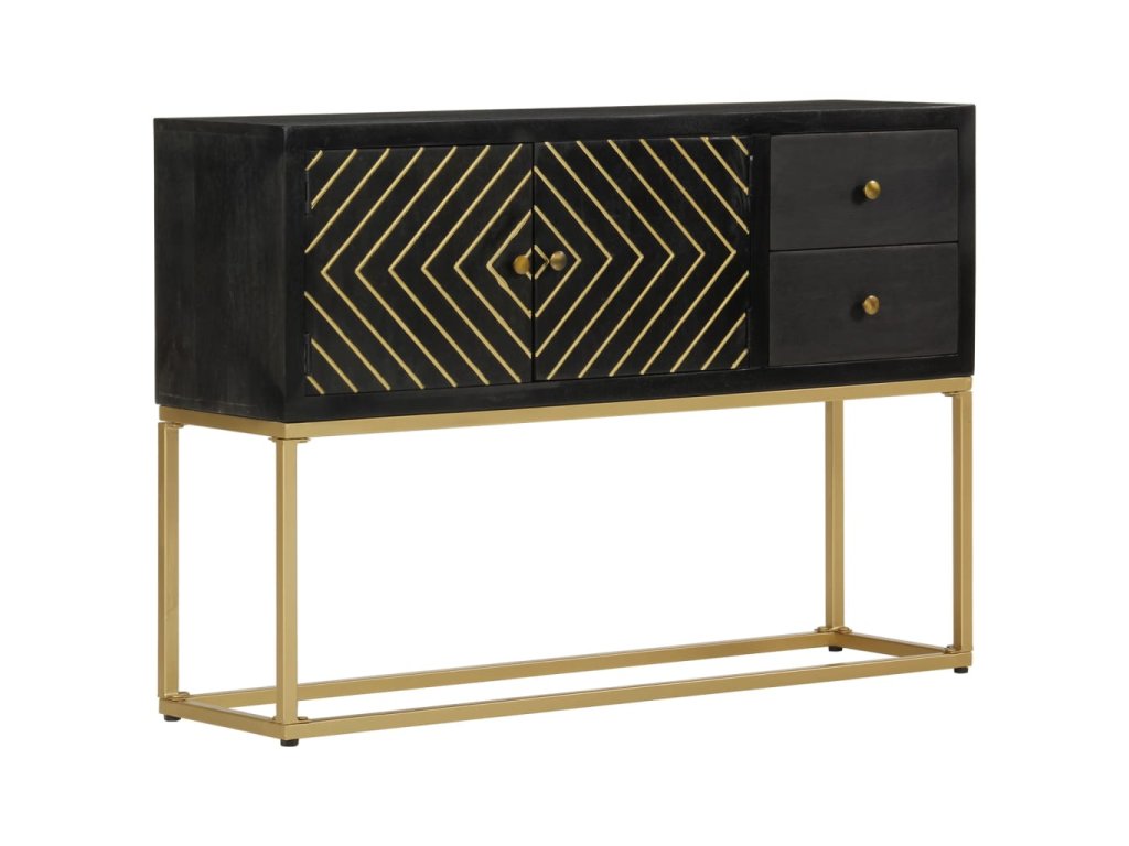 Příborník černý a zlatý 110x30x75 cm masivní mangovníkové dřevo