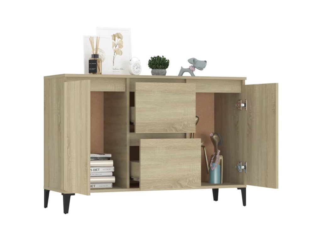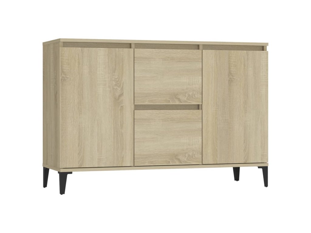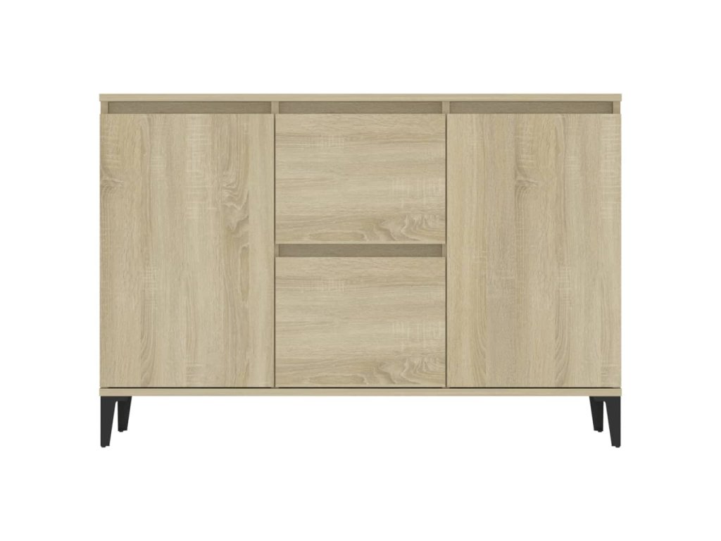 Tato odkládací skříňka je robustní a odolná a bude vám sloužit po dlouhá léta. Kovové nohy zvyšují její stabilitu. Je vybavená 2 zásuvkami a 2 dvířky a poskytuje dostatek úložného prostoru pro vaše předměty. Na robustní horní desku si můžete vystavit dekorativní předměty a fotorámečky. Úložnou skříňku lze navíc snadno čistit vlhkým hadříkem.