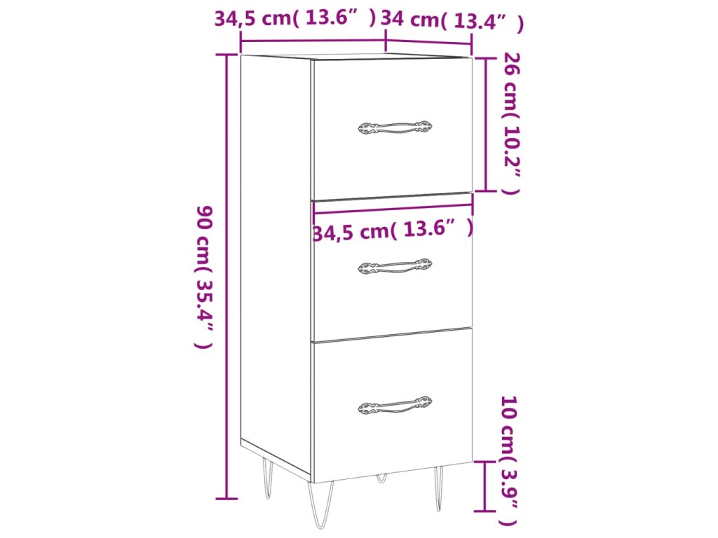 - Dostatek úložného prostoru: Příborník je navržen se 3 zásuvkami, ve kterých budete mít vaše věci uspořádané a neustále po ruce.