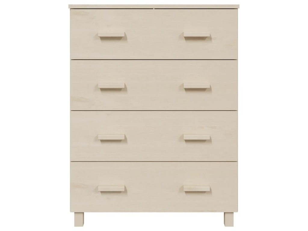 Komoda je vyrobená z masivního borového dřeva, takže je stabilní a odolná. Příborník obsahuje 4 hladce výsuvné zásuvky, které vám poskytnou spoustu prostoru pro přehledné uložení různých každodenních nezbytností. Robustní stolní deska je navíc ideální pro vystavení dekorativních předmětů, fotorámečků a pokojových rostlin.