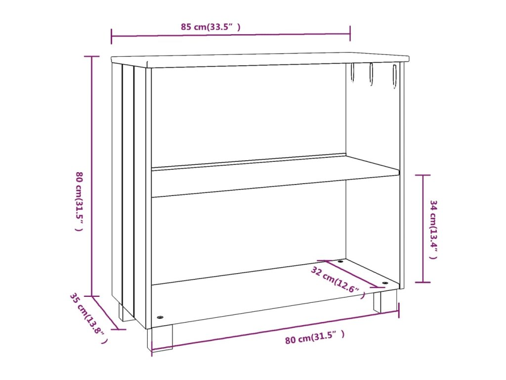 Příborník HAMAR medově hnědý 85 x 35 x 80 cm masivní borovice