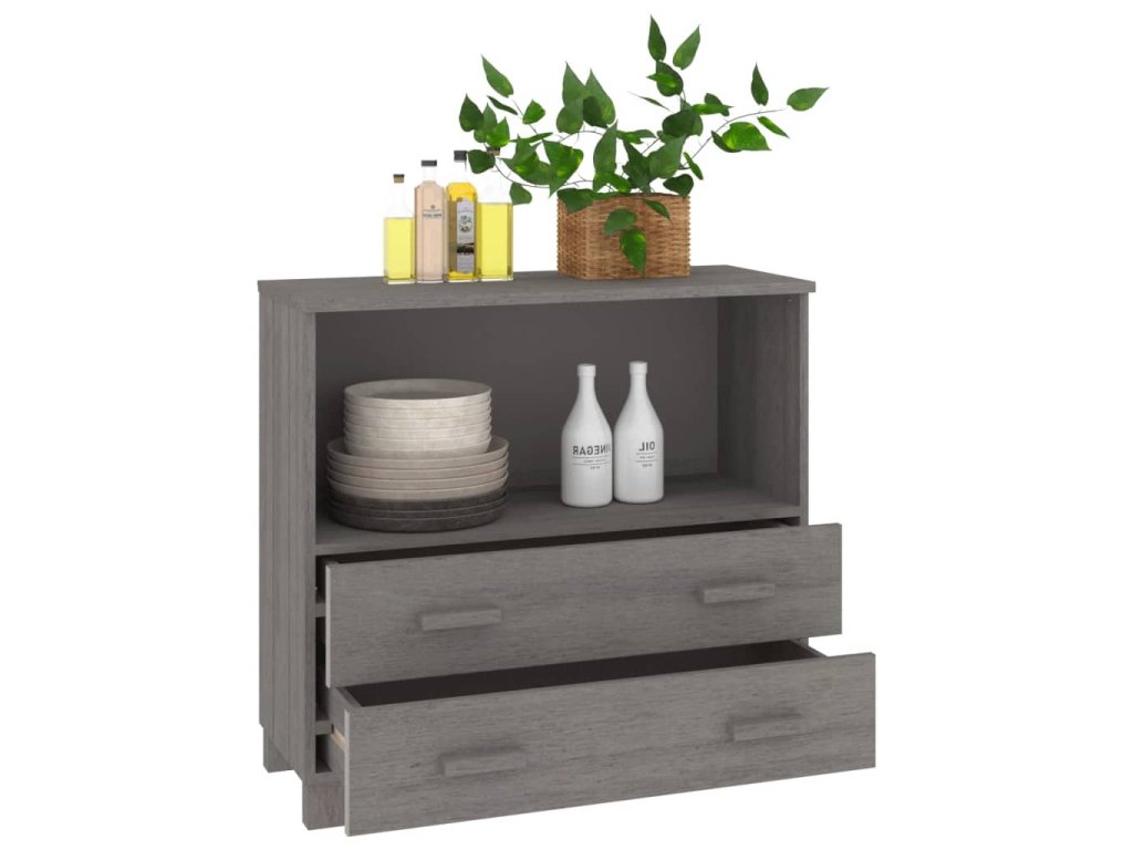 Příborník HAMAR světle šedý 85 x 35 x 80 cm masivní borovice
