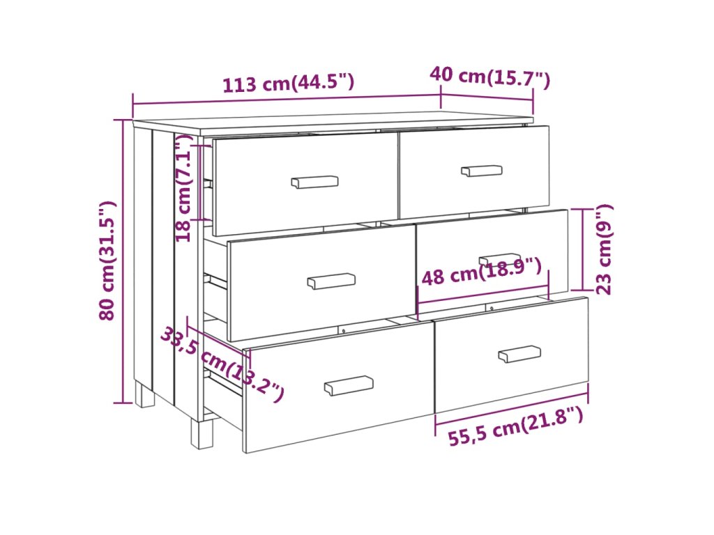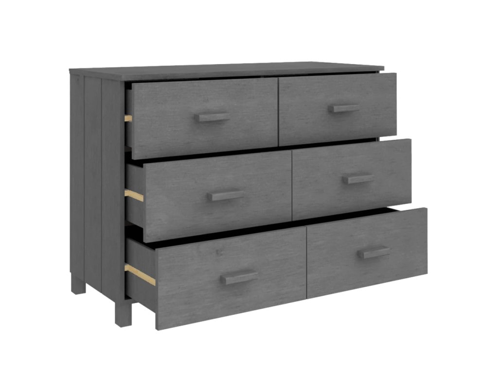 Skříňka se zásuvkami je zhotovena z masivního borového dřeva, je tedy bytelná a stabilní. Skříňka obsahuje 6 hladce výsuvných zásuvek, které poskytují dostatek prostoru pro přehledné uložení různých každodenních nezbytností, které tak budete mít pořád po ruce. Robustní horní deska je ideální pro vystavení dekorativních předmětů, fotorámečků nebo pokojových rostlin.