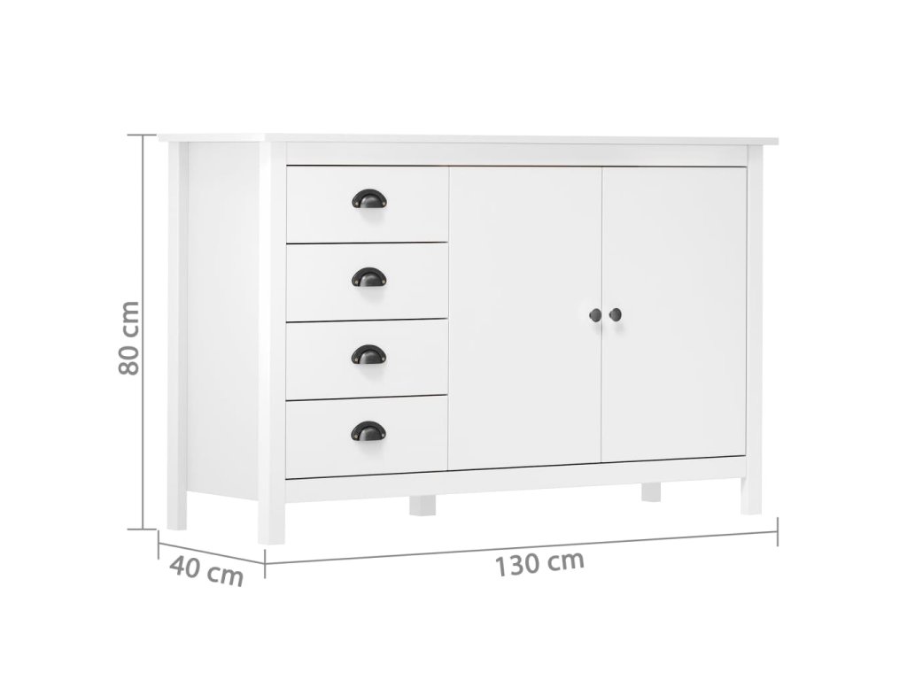 Příborník Hill bílý 130 x 40 x 80 cm masivní borové dřevo