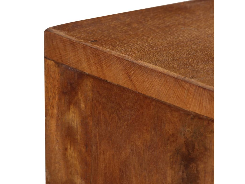 Skříňka je zhotovená z masivního recyklovaného dřeva, které pochází z trámů, podlah a podpěrných nosníků ze starých budov určených k demolici. Může tedy obsahovat celou řadu různých typů dřeva, jako je borovice, teak, buk, dub, cedr, mangovník, akácie atd. Recyklované dřevo tak nabývá vlastností všech těchto rozličných druhů dřeva. Recyklované dřevo je již zestárlé, ošlehané a vyschlé, takže se nesmršťuje ani neohýbá. Překrásná kresba dřeva činí každý kus nábytku jedinečným a lehce odlišným od ostatních. Známky opotřebení a zřetelná textura dřeva vypovídají o jeho bohaté historii a dodávají příborníku hřejivý a autentický vzhled. Každá fáze výrobního procesu je prováděna s největší pečlivostí, ať už se jedná o leštění, natírání anebo lakování.