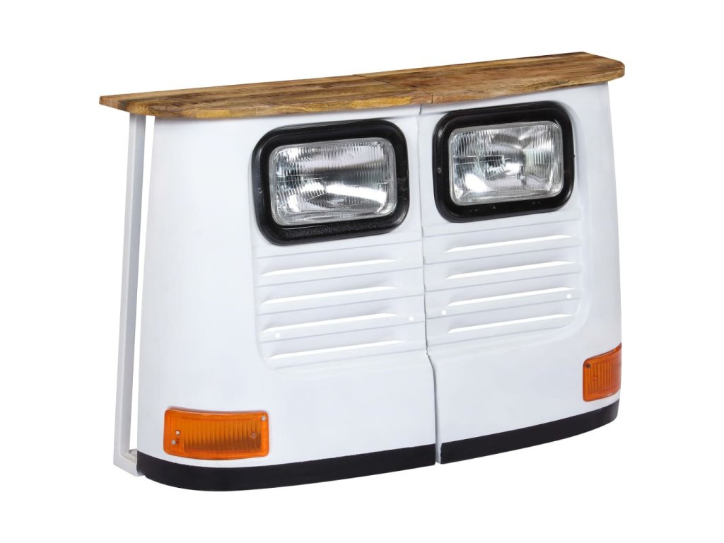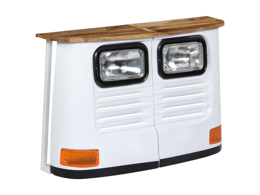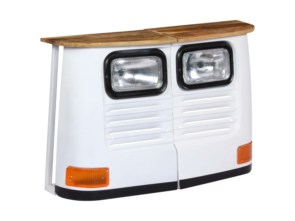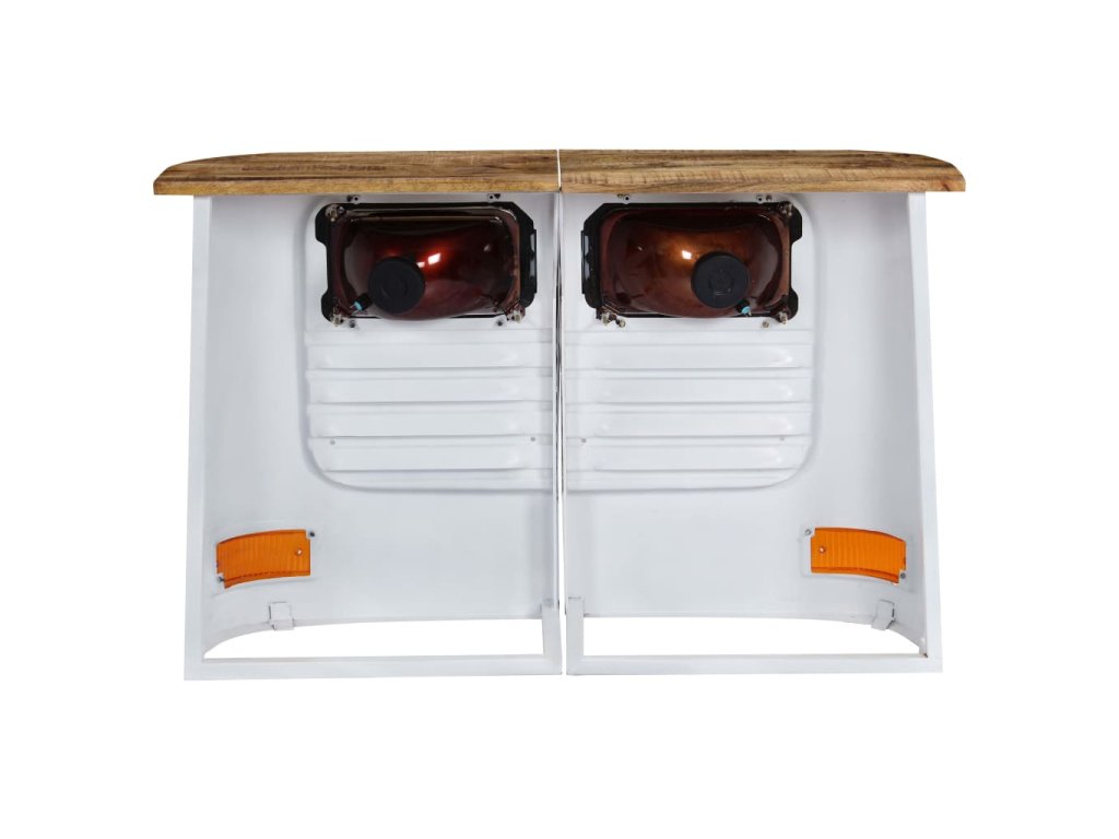 Horní deska je z mangovníkového dřeva a rám je z robustní oceli, příborník je tudíž pevný a odolný. Autenticky vypadající přední část kamionu a ocelová konstrukce propůjčují příborníku vintage kouzlo. Každá fáze výrobního procesu je prováděna s největší pečlivostí, ať už se jedná o leštění, natírání anebo lakování. Příborník je snadné sestavit. Balení obsahuje 1 příborník sestavený ze 2 částí.