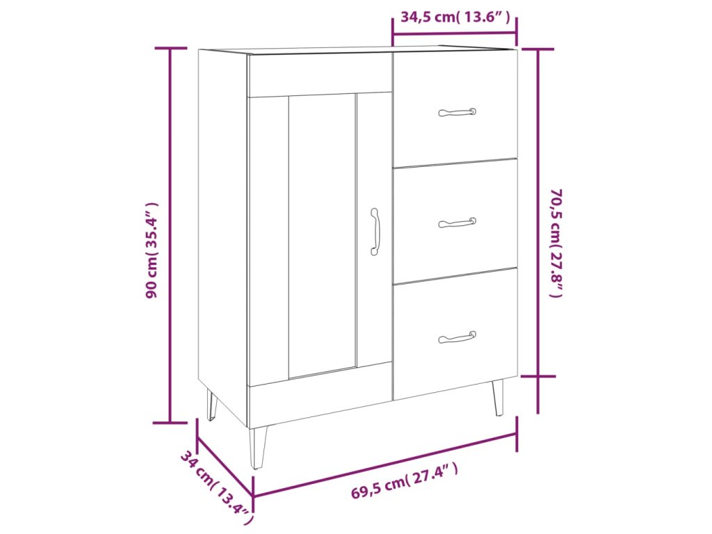 Příborník kouřový dub 69,5 x 34 x 90 cm kompozitní dřevo