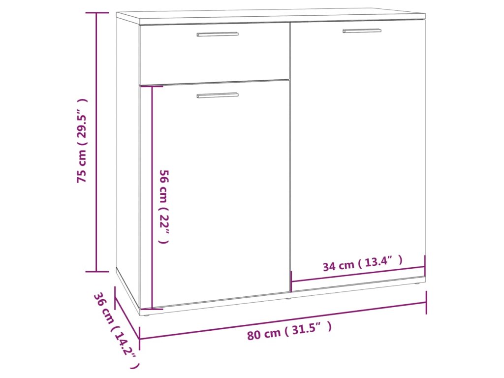Příborník kouřový dub 80 x 36 x 75 cm kompozitní dřevo