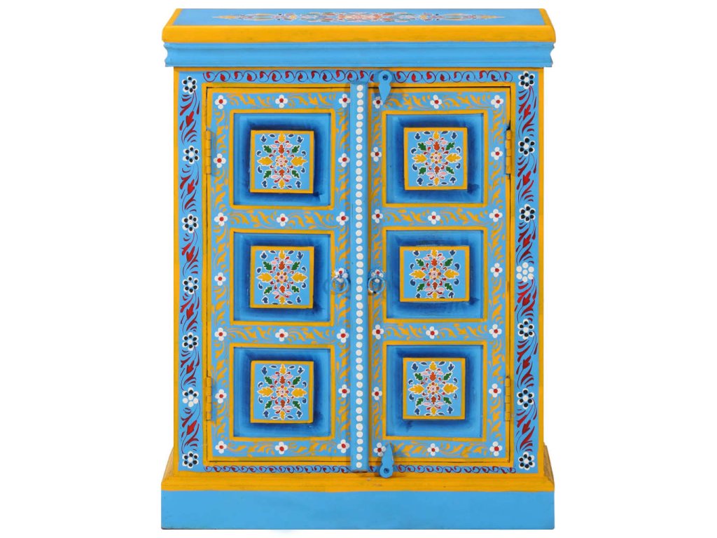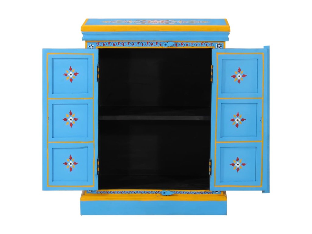 Příborník masivní mangovníkové dřevo tyrkysový ručně malovaný