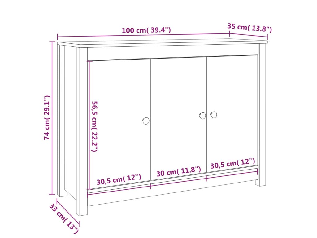 Příborník medově hnědý 100 x 35 x 74 cm masivní borové dřevo
