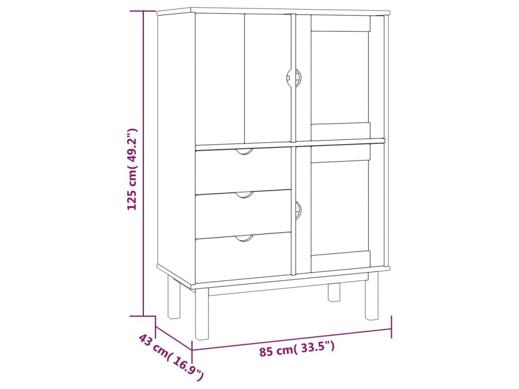 Příborník OTTA 85 x 43 x 125 cm masivní borové dřevo