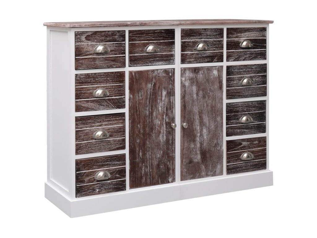 Tento příborník je vyroben z kvalitního dřeva pavlovnie a topolu a MDF desky, je tedy mimořádně robustní a má dlouhou životnost. V 10 zásuvkách a 2 skříňkách najdete spoustu místa, kde si můžete přehledně uspořádat celou řadu různých věcí, jako jsou klíče, poznámkové bloky, knížky, časopisy nebo jiné drobnosti a nezbytnosti. Prostorná horní deska se navíc skvěle hodí pro umístění multimediálních spotřebičů nebo pro vystavení dekorativních předmětů. Příborníky můžete buď zkombinovat dohromady, nebo je použít odděleně jako dvě samostatné skříňky.