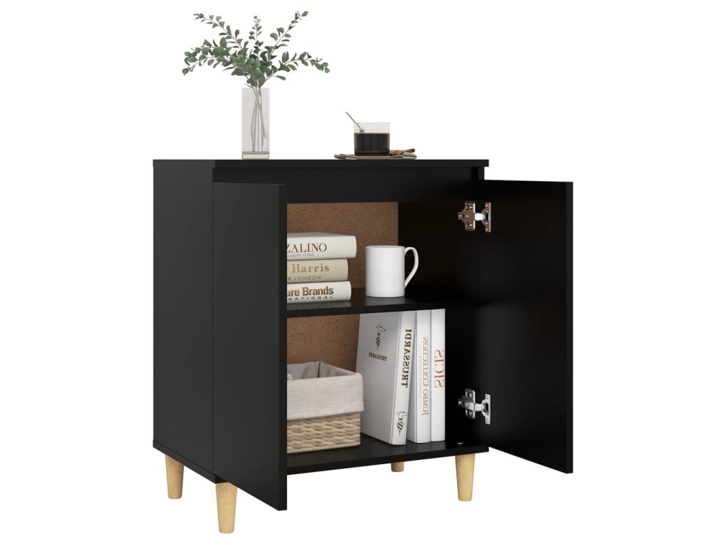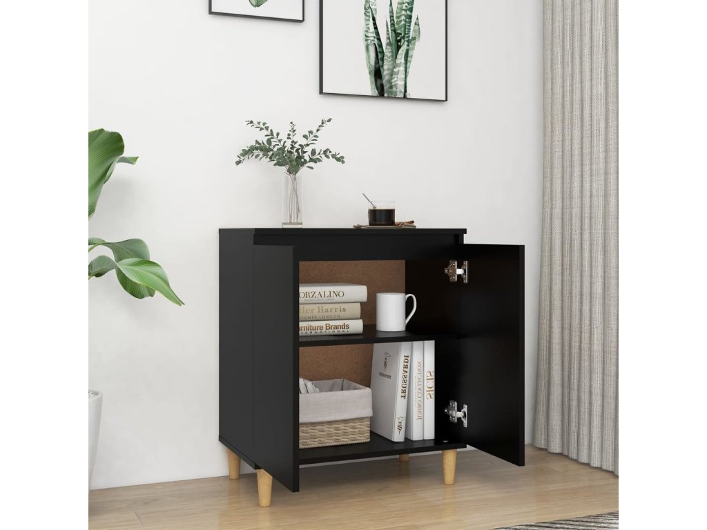 Příborník s dřevěnými nohami černý 60x35x70 cm kompozitní dřevo