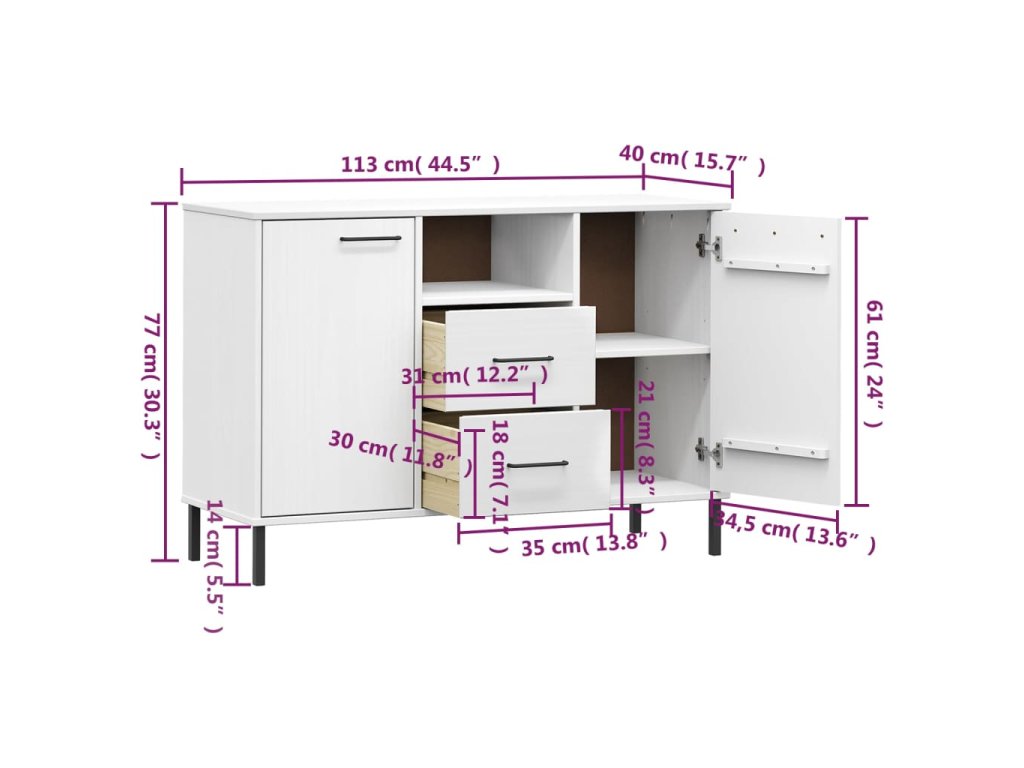 Příborník s kovovými nohami bílý 113 x 40 x 77 cm dřevo OSLO