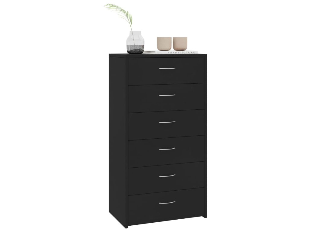 Příborník se 6 zásuvkami černý 50 x 34 x 96 cm kompozitní dřevo