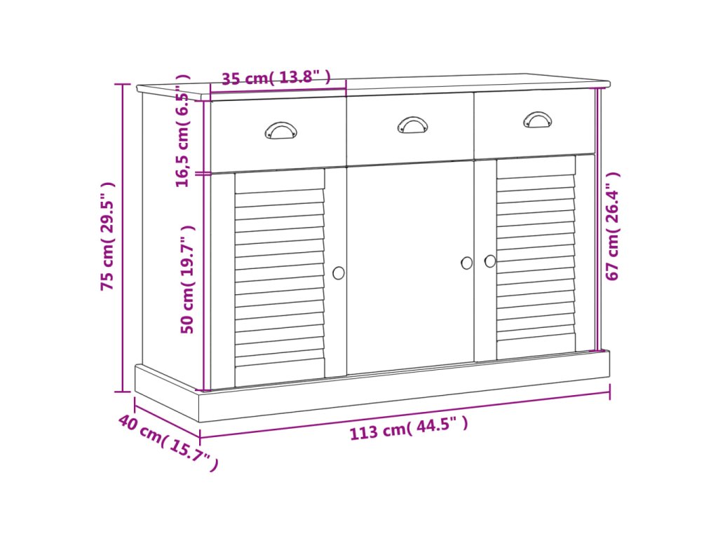 Příborník se zásuvkami VIGO 113x40x75 cm bílý masivní borovice
