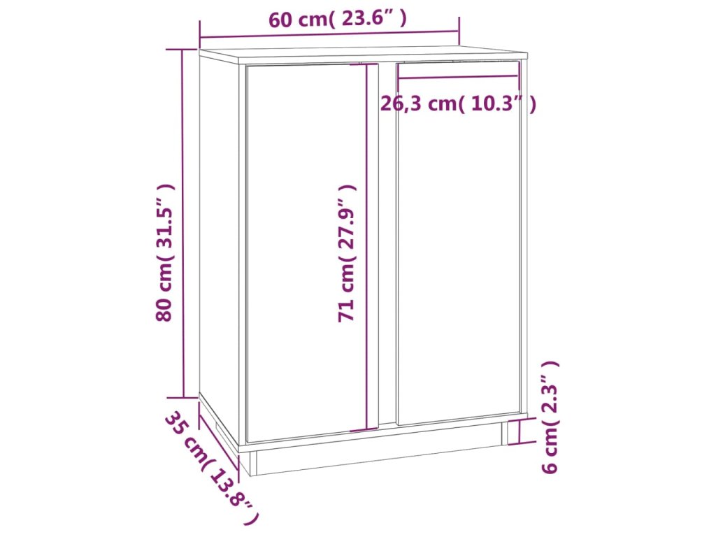 Příborník šedý 60 x 35 x 80 cm masivní borové dřevo
