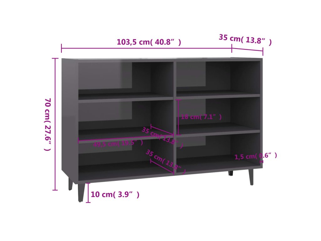 Příborník šedý s vysokým leskem 103,5x35x70 cm kompozitní dřevo