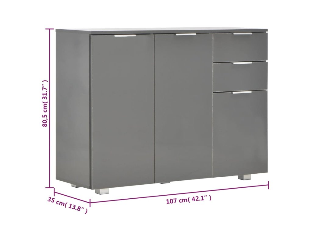 Příborník šedý s vysokým leskem 107x35x80,5 cm
