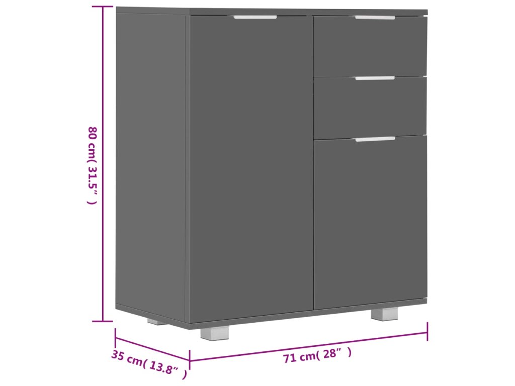 Příborník šedý s vysokým leskem 71x35x80 cm kompozitní dřevo