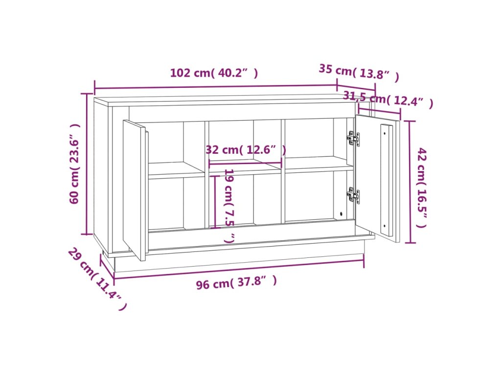 - Rozměry: 102 x 35 x 60 cm (Š x H x V)