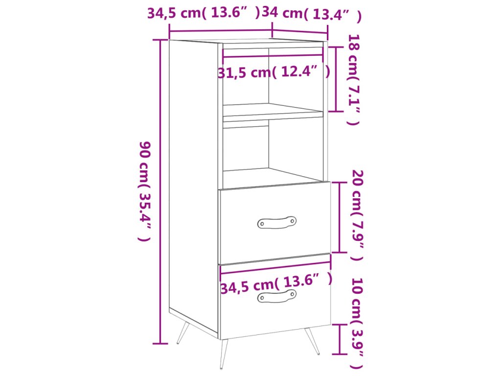 - Dostatek úložného prostoru: Tento příborník je navržen se 2 zásuvkami a 2 přihrádkami, kde budete mít vaše věci uspořádané a neustále po ruce.