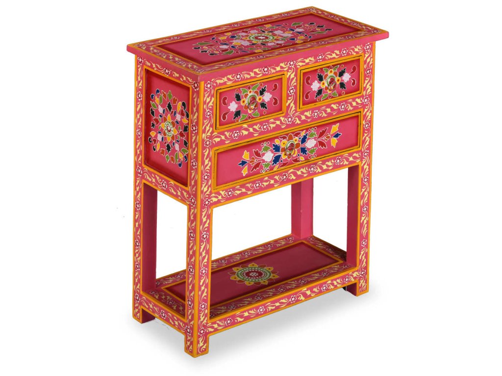 Příborník z masivního mangovníku ručně malovaný růžový