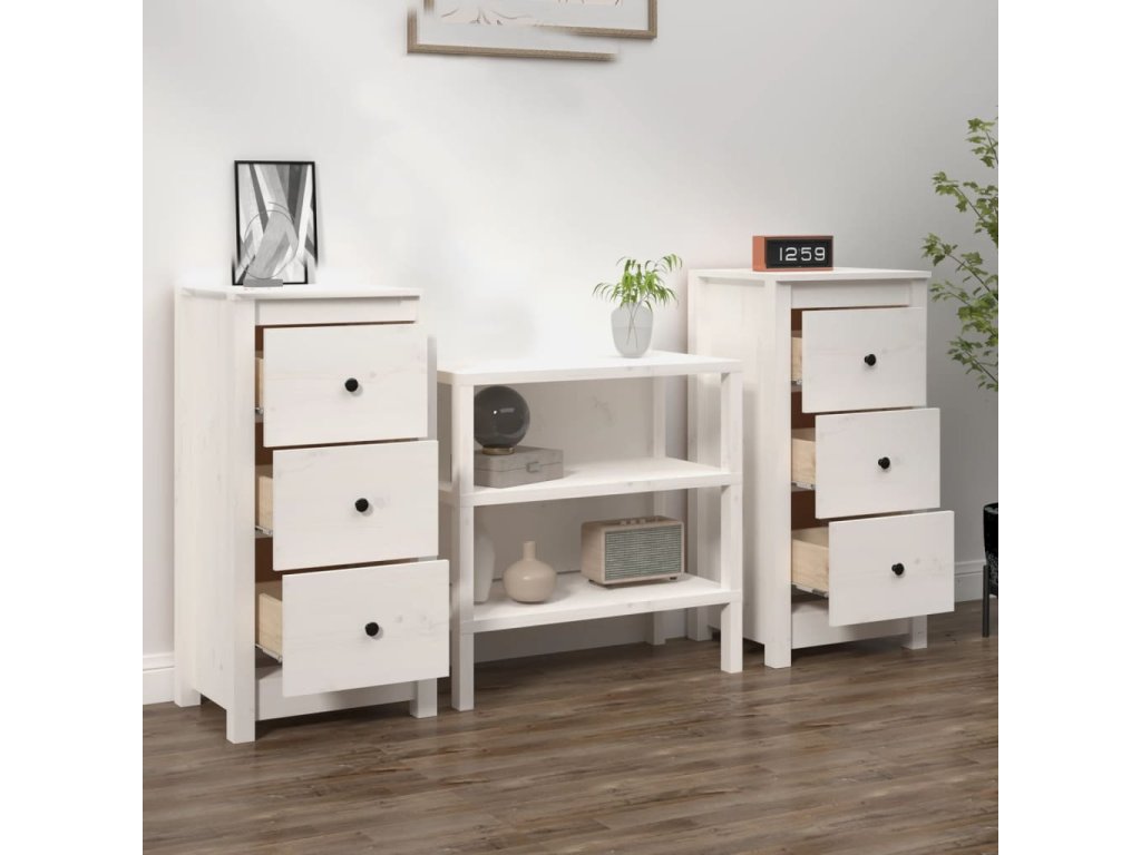 Příborníky 2 ks bílé 40 x 35 x 80 cm masivní borové dřevo